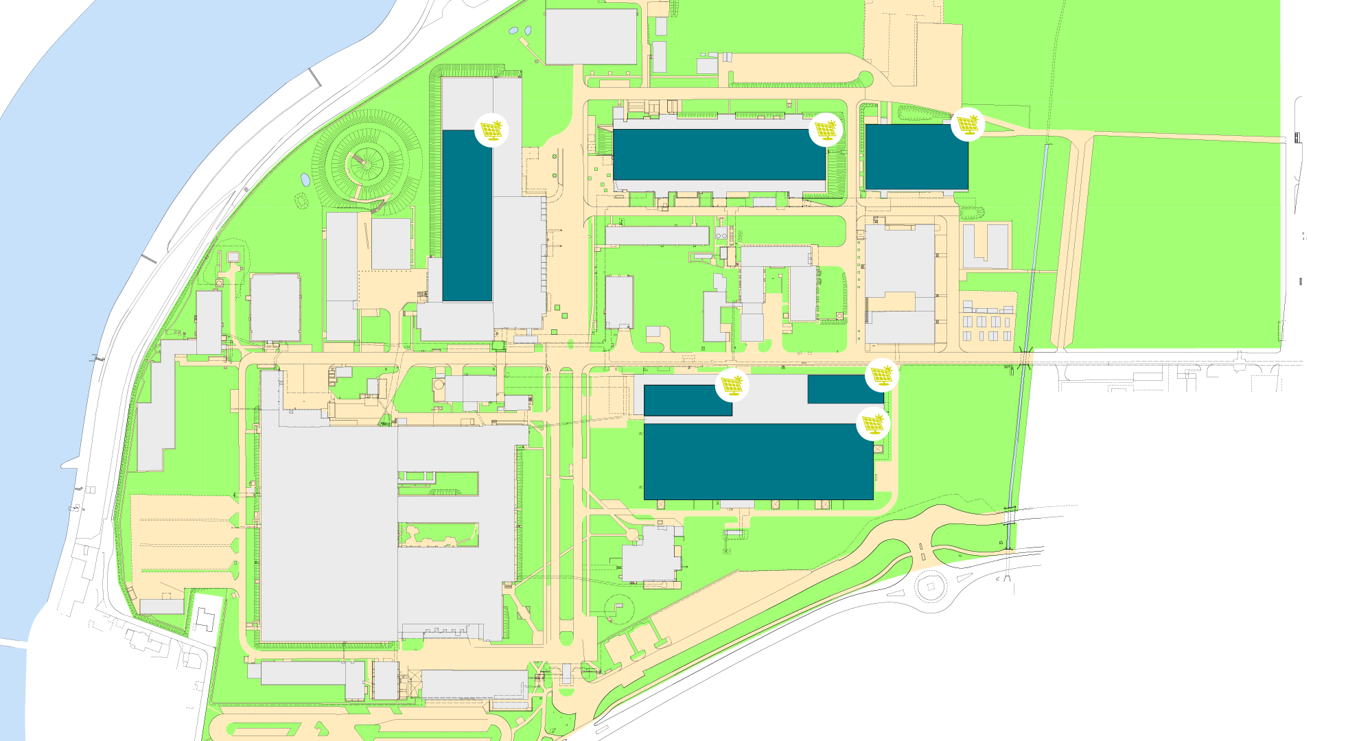 Plan des GETEC PARK.STEIN inkl. den Standorten der PV-Anlagen