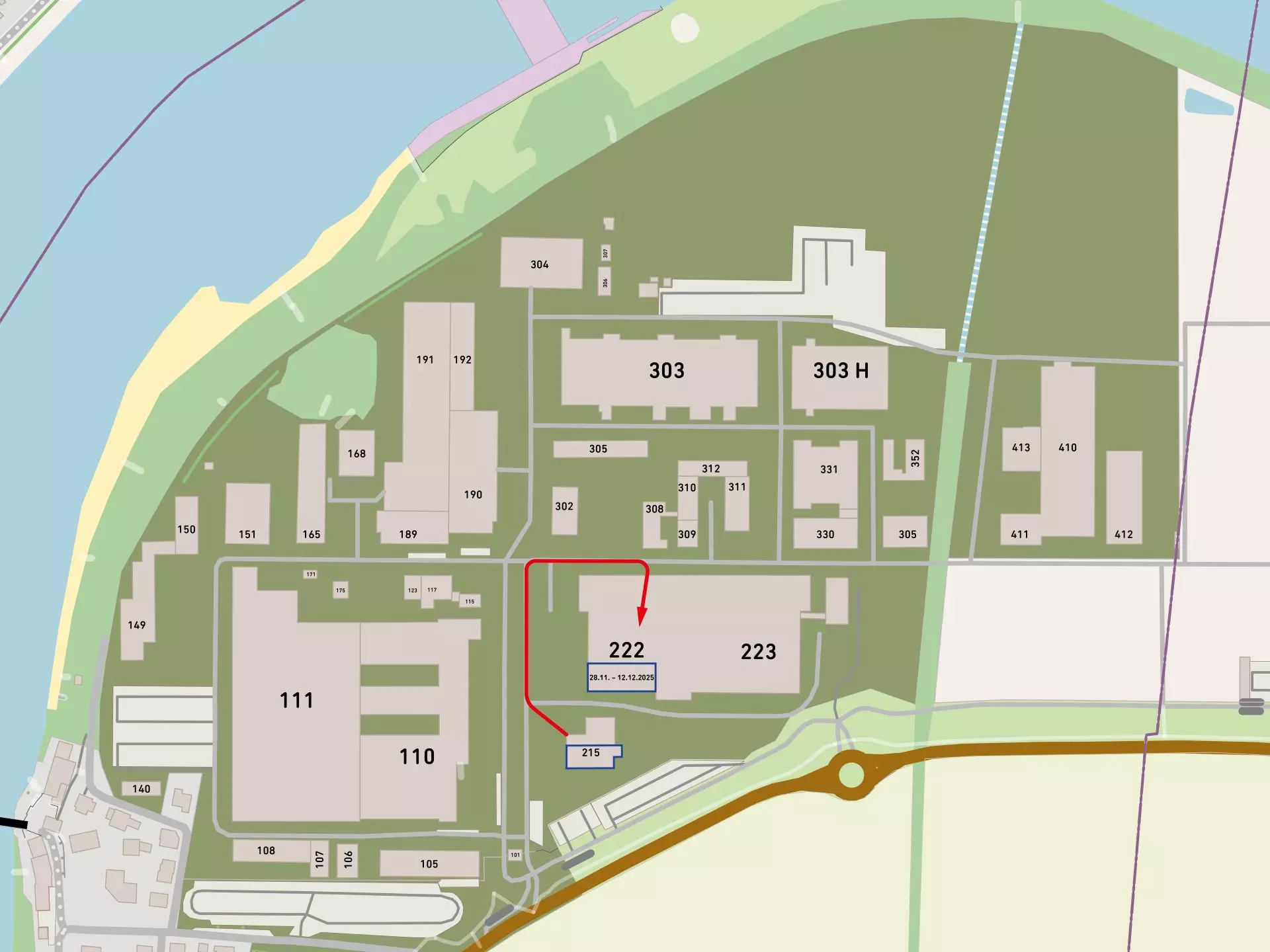 Der Zugang zum temporären Personalrestaurant erfolgt über den Haupteingang Bau 222. Bitte folgen Sie der Beschilderung und verlassen Sie die markierten und gesperrten Bereiche nicht.